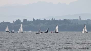 Der Regen der vergangenen Tage endete zwar pünktlich zum Wochenende und die Sonne strahlte, aber der Wind ließ zu wünschen übrig. Trotzdem konnte Wettfahrtleiter Hermann Herburger am Samstag zwei und am Sonntag eine Wettfahrt durchführen.
