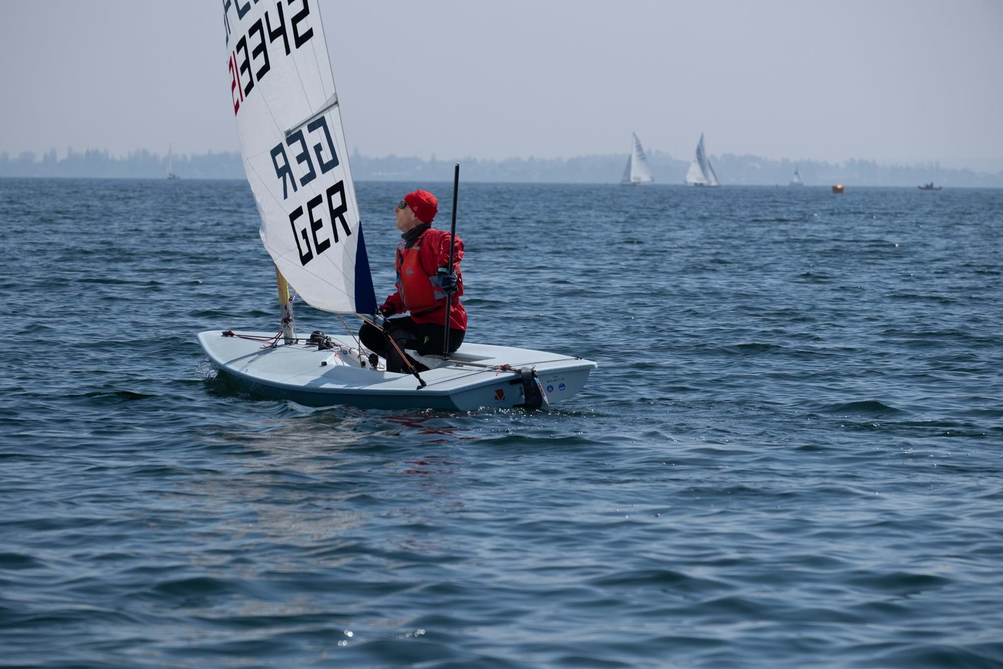 Am zweiten Tag, dem Sonntag, zeigte sich das Wetter weniger freundlich. Die Sonne ließ sich kaum blicken, dafür frischte der Wind deutlich auf. Mit den besseren Windbedingungen konnten insgesamt drei Läufe gesegelt werden.